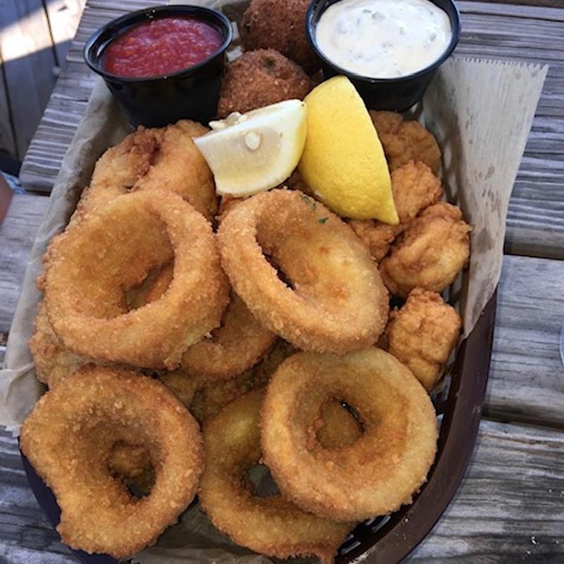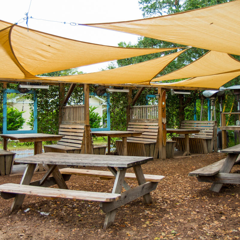 Casual camp-like setting with indoor bar and outdoor seating overlooking the marsh and Ellis Creek. Come on by 7 days a week 11:00am - 9:00pm